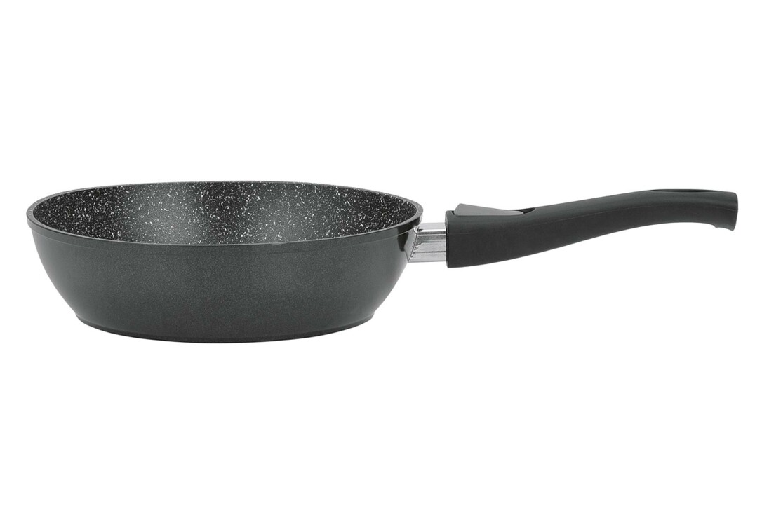 Die Aluminiumpfanne ist mit einer PFLUTON-Marmor Antihaft-Beschichtung ausgestattet. Die Pfane ist auf allen Herdarten einsetzbar und dank des abnehmbaren Griffs kann sie sogar bis 200C im Backofen verwendet werden.