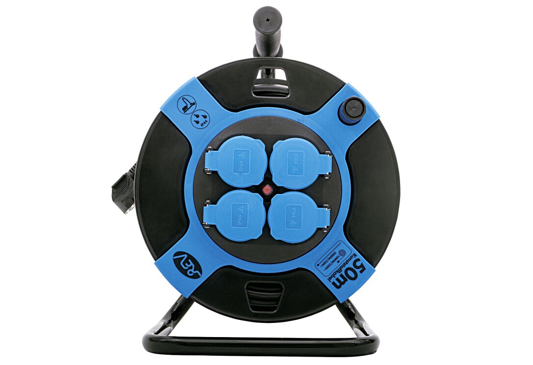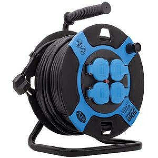 Kabeltrommel - Kunststoff - 4-fach - IP 44 - 50 m - H05VV-F 3G1,5 - sw-bl