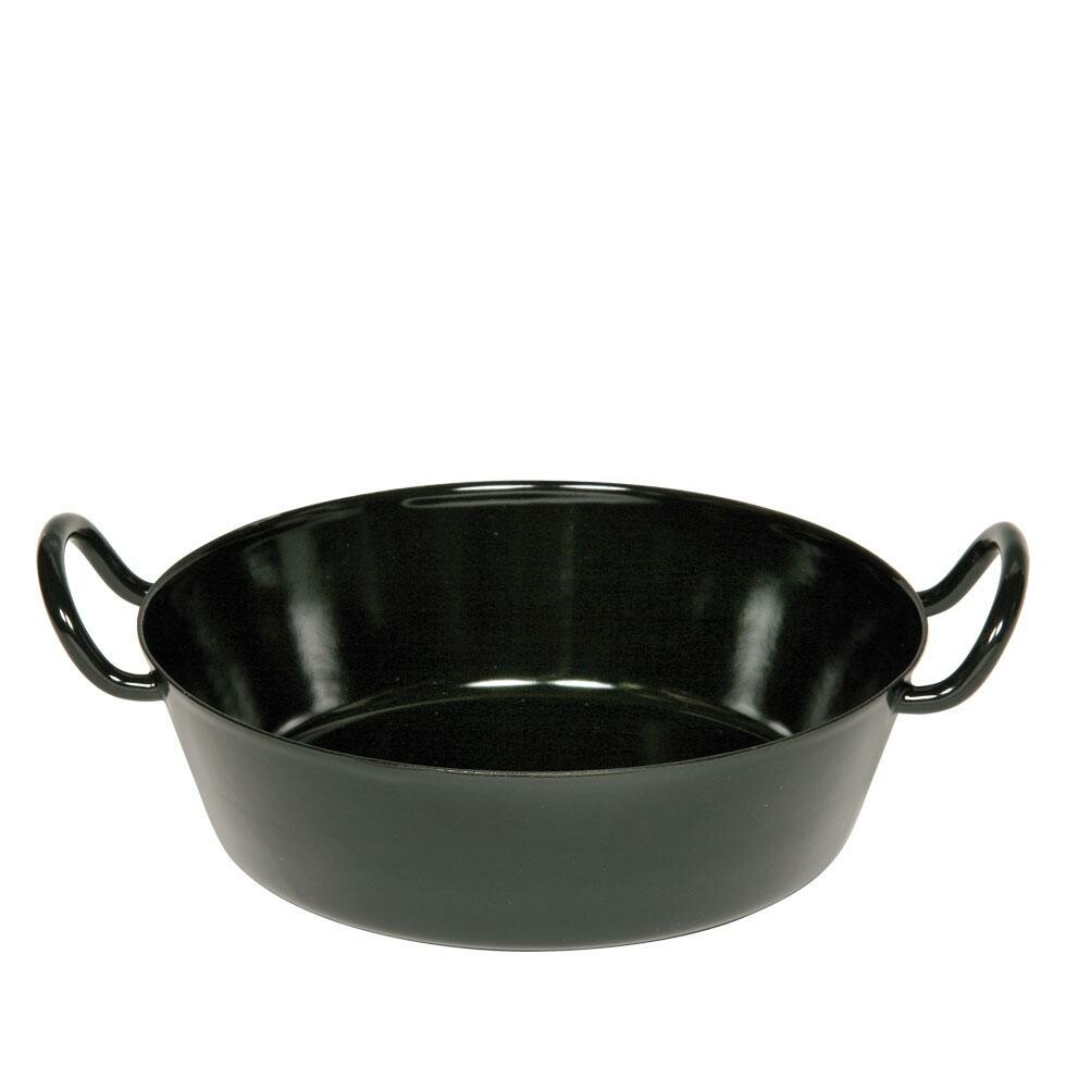 Als österreichisches Unternehmen führen wir natürlich auch eine Schnitzelpfanne. Aber lassen Sie sich nicht von dem Namen täuschen! Die runde Backofenpfanne mit dem hohen Rand und zwei Griffen eignet sich zwar hervorragend zum Herausbacken knuspriger Schnitzel, ist aber auch sonst vielseitig einsetzbar: Schmor- und Eiergerichte und sogar asiatische Wokgerichte gelingen in der Schnitzelpfanne aus Emaille. Mit ihren zwei praktischen Griffen kann sieauf den Esstisch gestellt werden und eignet sich so auch als Servierpfanne.