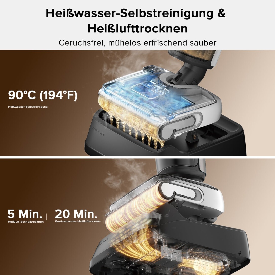 Roborock F25, Elektrischer Mopp, Schwarz, Weiß, 870 l, Trocken, Status, Schlaufengriff