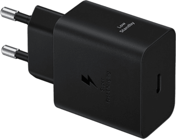 Samsung Schnellladeadapter 45 Watt. Aufladetyp: Drinnen, Energiequelle: AC, Aufladekompatibilität: Smartphone, Tablets. Eingangsspannung: 100-240 V, Maximale Ausgangsspannung: 5 V. USB Typ-C Anzahl Anschlüsse: 1, Schnellladung. Produktfarbe: Schwarz