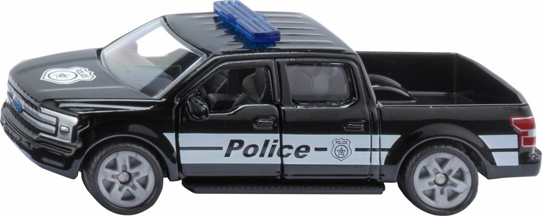 Der Ford F-150 US Police ist der perfekte Pick-up für alle, die Action und Abenteuer lieben! In seiner schwarzen Polizei-Version ist er bereit, jede Verfolgungsjagd zu meistern. Der Ford F-150 ist seit Jahren das beliebteste Auto in den USA groß, stark und mit einer riesigen Ladefläche, perfekt für alle, die viel Platz brauchen. Dieses Modell hat eine detailreiche Metall-Karosserie, eine Polizei-Markierungen und Blaulicht auf dem Dach. Mit seinen Gummireifen und den coolen Designfelgen in Blistergröße fährt der F-150 realistisch über den Spielboden. Natürlich darf auch die Anhängerkupplung nicht fehlen damit lässt sich auch im Spiel jede Menge transportieren. Ob bei spannenden Polizei-Einsätzen oder wilden Abenteuern der Ford F-150 sorgt für jede Menge Action und Spaß im Kinderzimmer!