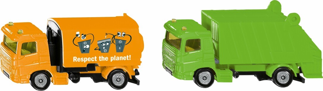 Dieses neue Kommunalset von siku bringt Sauberkeit und Ordnung in die Stadt jetzt mit frischem Design! Der Müllwagen erstrahlt in lebendigem Grün, während die Kehrmaschine im kräftigen Orange auffällt, beide mit moderner Bedruckung. Gemeinsam sorgt das kraftvolle Duo dafür, dass Straßen und Plätze blitzblank bleiben, und ist bereit für alle Aufgaben im Kinderzimmer. Die beiden Modelle besitzen stabile, zweiachsige Kunststofffahrgestelle mit leichtgängigen Rädern und robuste Metall-Fahrerhäuser. Die Kehrmaschine ist mit einem Aufbau aus Kunststoff und einer Saugeinrichtung ausgestattet, während der Müllwagen über einen kippbaren Aufbau und eine zu öffnende Heckklappe verfügt. Der Aufdruck ''Clean your City auf dem Müllwagen unterstreicht die Mission: Mit diesem Set können kleine Stadtreiniger voller Begeisterung ans Werk gehen und spielerisch für Sauberkeit sorgen.