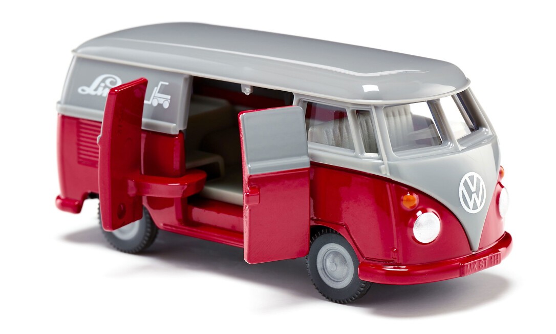 VW T1 Transporter Wo immer er auftaucht, wird er mit großem Hallo begrüßt: Der VW T1, von kleinen und großen Fans zärtlich Bulli genannt. Der knuffige Kleinbus mit der charakteristischen, platten Front genießt höchsten Kultfaktor und stellt selbst so manch schnittigen Sportwagen-Klassiker in den Schatten. siku präsentiert den Klassiker jetzt in einer exklusiven Linde-Edition mit rot-grauer Lackierung. Bei dem Transporter können die Seitentüren geöffnet werden, die Anhängerkupplung ist kompatibel mit allen gängigen Anhängern von siku. Stabile Karosserie aus Metall mit Gummibereifung.