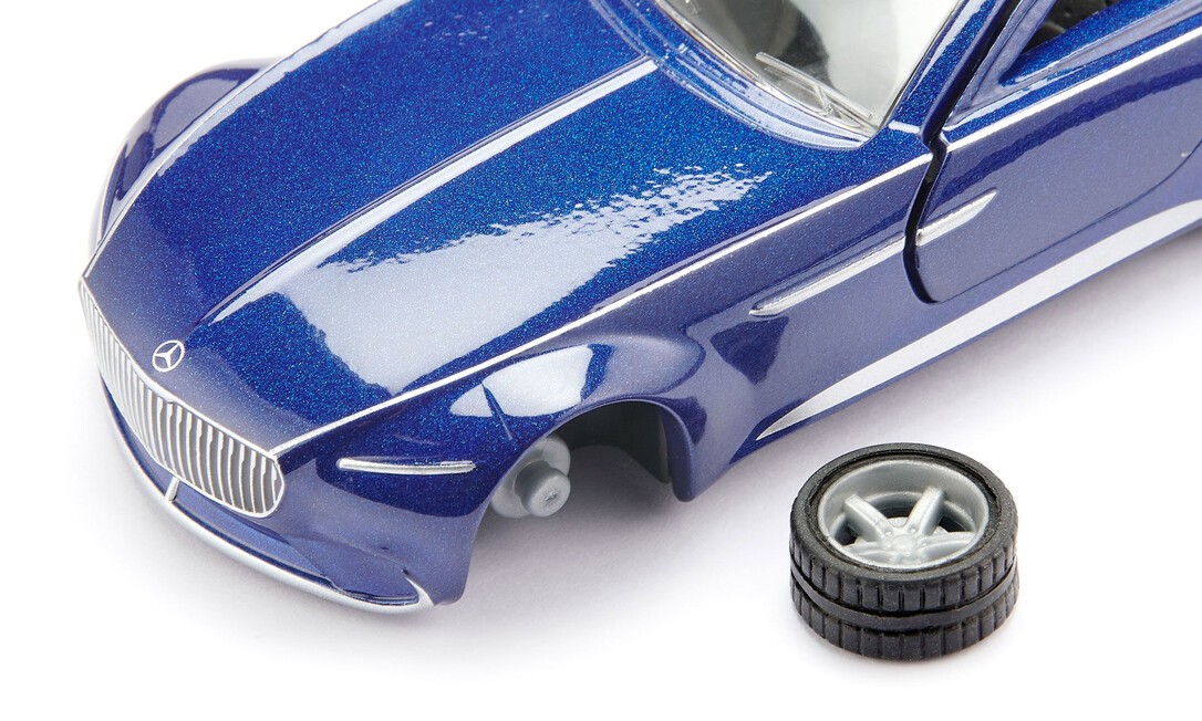 Der Vision Mercedes-Maybach 6, jetzt in elegantem Blau, ist eine spektakuläre Konzeptstudie eines luxuriösen Grand Coupés. Das auffällige Design des Showcars beeindruckt mit einer langen Motorhaube, einem niedrigen Dach und einem sportlich geformten Heck der gewünschte Wow-Effekt ist garantiert. Obwohl das Einzelstück mit einem 750 PS starken Elektromotor ausgestattet ist, wird es fast nie auf der Straße zu sehen sein! Stattdessen wird es als Miniaturmodell im Maßstab 1:50 in vielen Kinderzimmern seinen Platz finden.