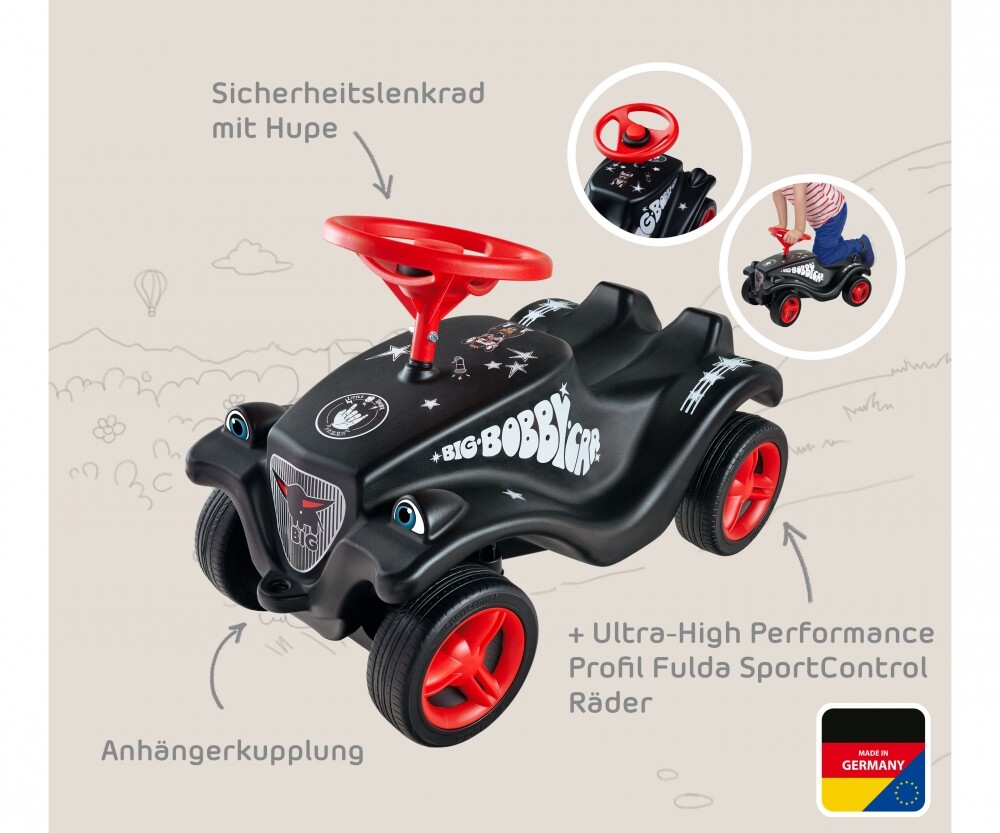 Rutschfahrzeug für Kinder ab 12 Monaten - Extra breite, flüsterleise Räder mit roten Felgen - Erognomischer Sitz mit tiefliegendem Schwerpunkt - Inkl. Sticker mit Rockstar-Design - Sitzhöhe ca. 19 cm - Made in Germany