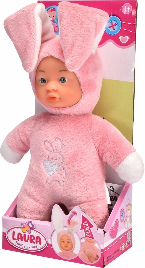 Weichkörperpuppe im Hasenlook Laura Funny Bunny begeistert mit einem süßen pinken Hasenoutfit, das mit einem Herz verziert ist. Die 24 cm große Puppe lädt zum Spielen und Kuscheln ein. Interaktive Funktion Durch Drücken auf den Bauch stellen sich die Hasenohren der Puppe auf und sorgen für zusätzlichen Spielspaß und Überraschungsmomente. Fördert die Feinmotorik Das weiche Material und die interaktiven Funktionen animieren Kinder dazu, die Welt spielerisch zu erkunden und fördern die motorischen Fähigkeiten. Ab 1 Jahr geeignet Diese liebevoll gestaltete Puppe ist ideal für Kinder ab 1 Jahr und wird schnell zum treuen Begleiter im Alltag. Simba Toys Elefantenstarker Spielspaß! Im Zentrum der Produktentwicklung steht die Begeisterung der Kinder. Für Jungen und Mädchen, Klein und Groß. Kinder sollen Spaß haben und gefördert werden.