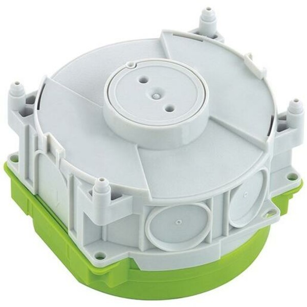 Universelles Einbaugehäuse für Ortbeton oder Fertigteilbau, zum Einbau von NV/HV/LED-Leuchten ( 1) und Lautsprechern. Geeignet für Klebebefestigung und Gegenschalung, Für die Installation in Decken ab 140 mm, Wandeinbau mit IBT Stützholmtechnik, Auslassöffnung: Ø 68 mm