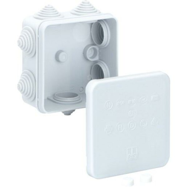 Verbindungsdose HP 80-L, Verbindungsdose nach DIN EN 60670 (VDE 0606), 7 eingedrückte Stufennippel, Dichtbereich 5 - 16 mm, für Klemmen bis 2,5 mm², mit Schutzart IP55, bis 2,5², mit Schutzgrad IK07, Schutzklasse II, 85 x 85 x 42, grau, ohne Klemmen,