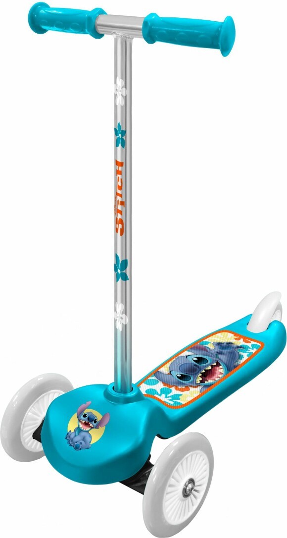 3-Rad-Roller im Design von Stitch. Stabil dank drei Rädern, rutschfeste Trittfläche und ABEC-5-Kugellager. Beide Vorderräder neigen sich zum Lenken. Fußbetätigte Hinterradbremse. Für Kinder ab 3 Jahren. Max. Belastung: 20kg.
