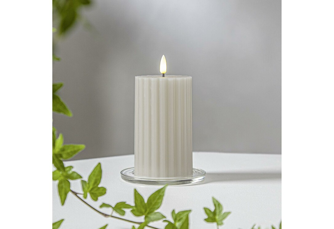 STAR TRADING LED Wachskerze Flamme Stripe Batterie Timer beige 15x7,5cm