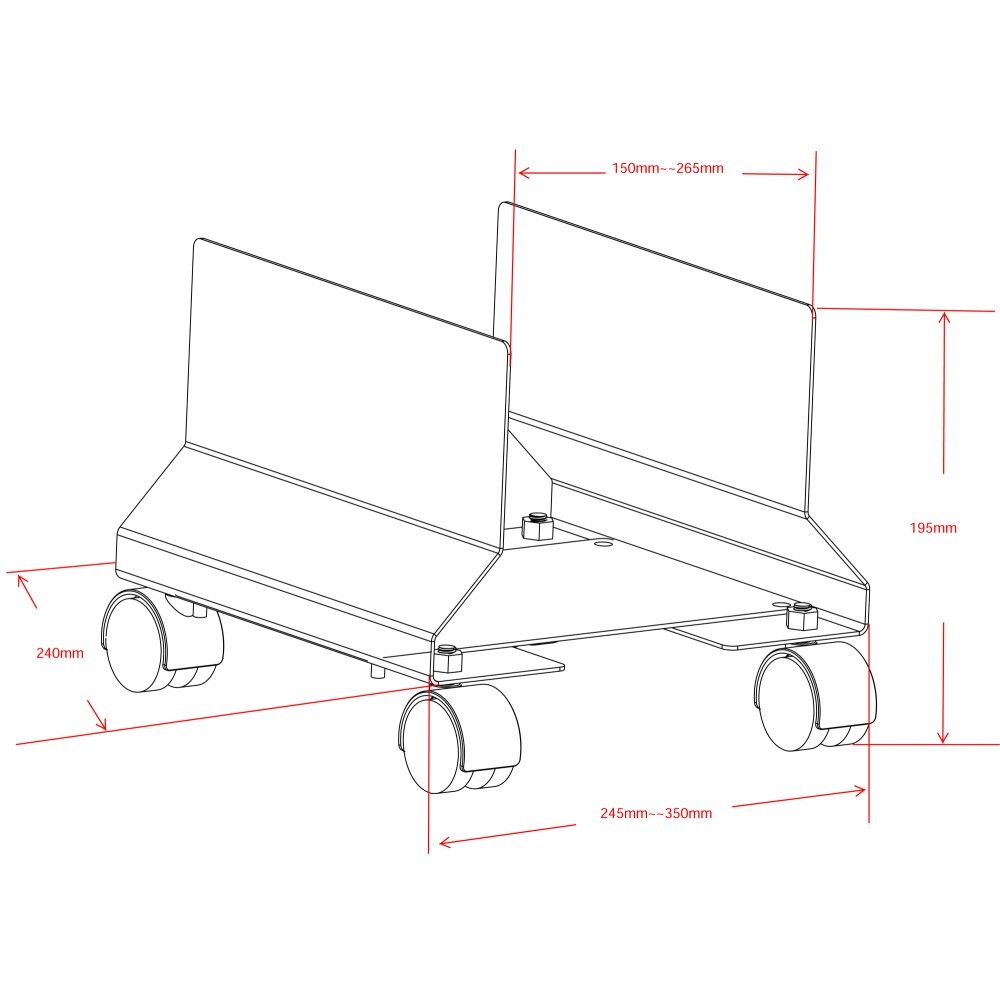 Techly ICA-CS 34. Typ: Multimedia-Wagen, Produktfarbe: Schwarz, Empfohlene Nutzung: PC. Höhe: 195 mm, Breite: 240 mm, Tiefe: 265 mm