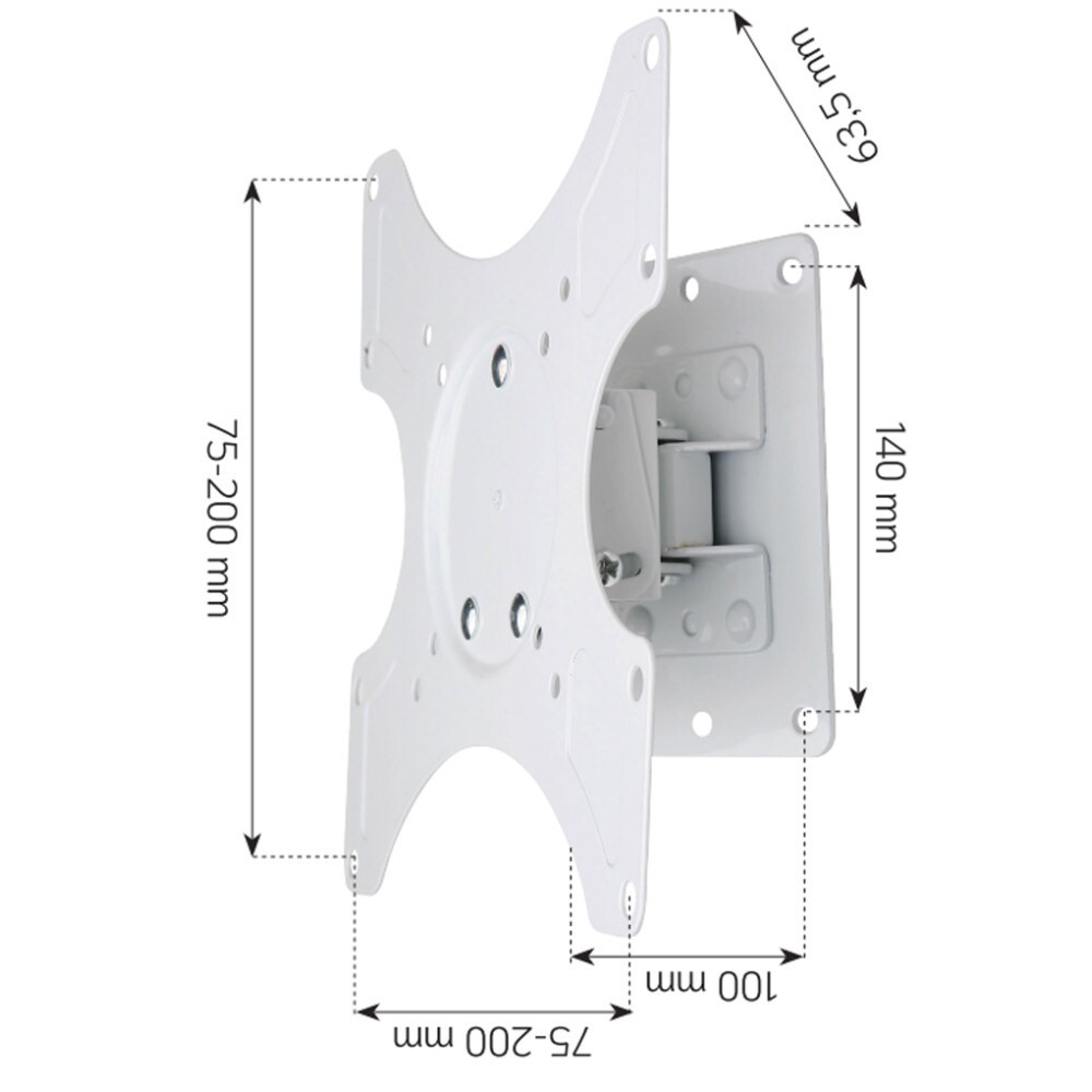 Techly ICA-LCD 2900WH. Höchstgewichtskapazität: 25 kg, Minimum Bildschirmgröße: 48,3 cm (19"), Maximale Bildschirmgröße: 94 cm (37"), Minimale VESA-Halterung: 75 x 75 mm, Maximale VESA-Halterung: 200 x 200 mm. Neigungswinkelbereich: -12 - 0°, Abstand zur Wand (min): 6,35 cm, Abstand zur Wand (max): 6,35 cm. Produktfarbe: Weiß