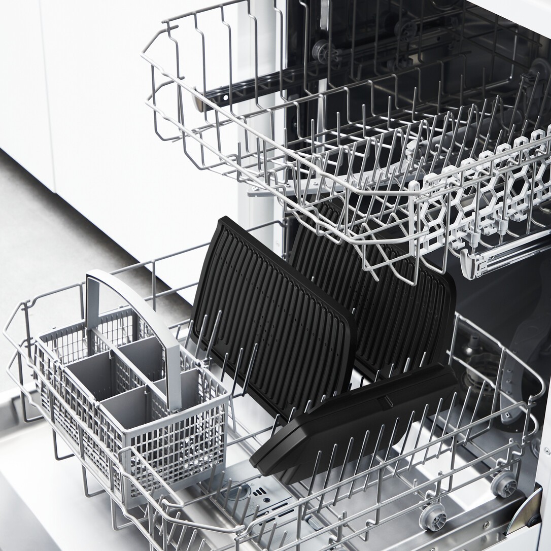 Tefal Optigrill+ XL GC727D10. Produktfarbe: Schwarz, Edelstahl, Gehäusematerial: Metall, Formfaktor: Rechteckig. Leistung: 2000 W. Breite: 445 mm, Tiefe: 365 mm, Höhe: 175 mm. Verpackungsbreite: 375 mm, Verpackungstiefe: 481 mm, Verpackungshöhe: 229 mm. Menge pro ISO Container (20 Fuß): 570 Stück(e), Menge pro ISO Container (40 Fuß): 1052 Stück(e), Produkte pro Palettenlage: 6 Stück(e)
