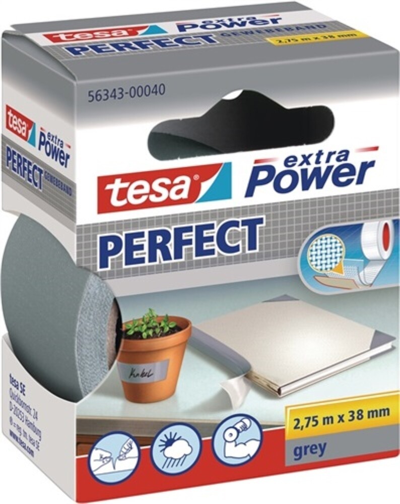 Tesa Gewebekleb. 2,75m x 38mm extra Power grau Perfekt 56343 Gewebeklebeband