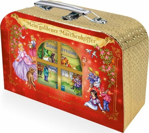Dieser Märchenkoffer ist etwas ganz besonderes: Er hat nicht nur ein kleines Fenster im Deckel, durch das man ins Innere des Koffers sehen kann, er ist auch schon gefüllt! Vier Mini-Bücher mit den Märchenklassikern Schneewittchen, Aschenputtel, Hänsel und Gretel und Rotkäppchen warten auf gemütliche Vorlesestunden. Der Koffer aus stabiler Pappe bietet noch Platz für weitere Kostbarkeiten und kann überall mit hingenommen werden. Ein tolles Geschenk für kleine Märchen- Fans!