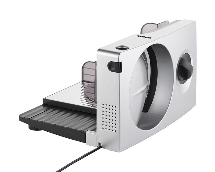 Mit dem einfach entnehmbaren Edelstahl-Wellenschliffmesser (ca. 17 cm Durchmesser) liefert der Allesschneider Curve Silver gleichmäßige Scheiben. Ob hauchfein bei Salami, Schinken und Co. oder dicker für knusperfrisches Brot oder köstlichen Braten: die Schnittbreite kann stufenlos von 0 bis 15 Millimeter eingestellt werden. In Sachen Sicherheit lässt der Allesschneider keine Wünsche offen. Durch seine Antirutschfüße hat er sicheren Stand auf der Arbeitsfläche; per Sicherheitsschalter ist die Kindersicherung gewährleistet. Und der abnehmbare Restehalter mit Fingerschutz sorgt für das problemlose Schneiden ohne Reststücke - ohne Gefahr für die Fingerkuppen!