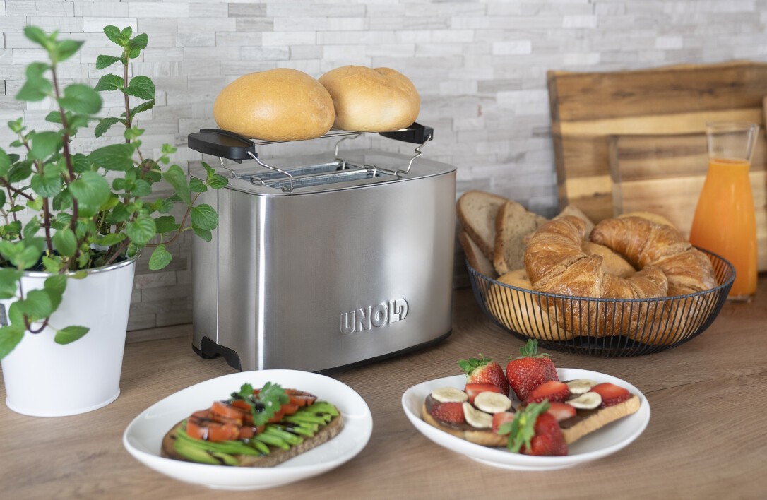 Unold Toaster Tom 38266. Anzahl der Scheiben: 4 Scheibe(n), Produktfarbe: Edelstahl, Gehäusematerial: Edelstahl. Leistung: 1200 W, AC Eingangsspannung: 220-240 V, Maximale Eingangsleistung: 1400 W. Kabellänge: 75 m, Breite: 385 mm, Tiefe: 160 mm. Menge pro ISO Container (20 Fuß): 1308 Stück(e), Menge pro ISO Container (40 Fuß): 2700 Stück(e), Menge pro intermodalem Container (40 Fuß, HC): 3150 Stück(e). Gewicht der Papierverpackung: 582 g, Gewicht der Plastikverpackung: 14 g, Anderes Verpackungsgewicht: 0,5 g