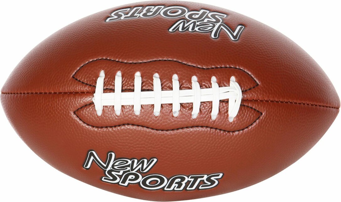 New Sports American Football, unaufgeblasen. Aus PVC mit einer Materialdicke von 3mm. Gewicht 260g. Maße aufgeblasen: 25x14,5x14,5cm.