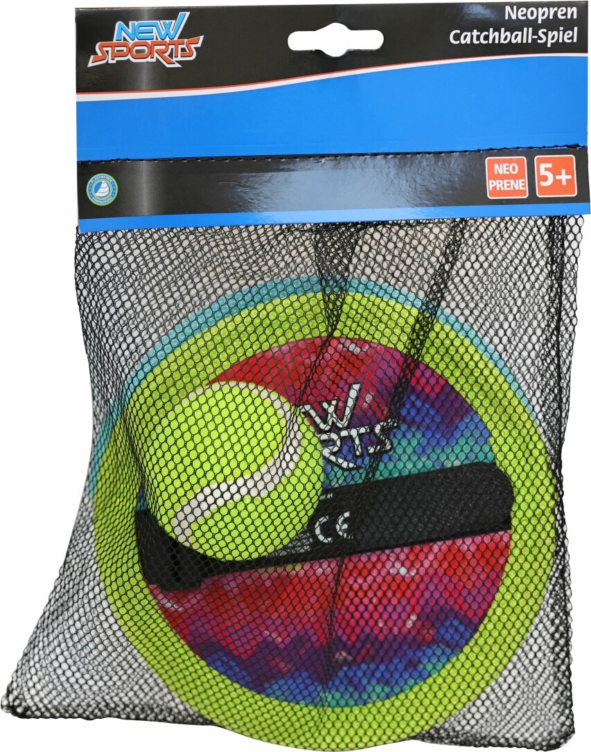 New Sports Catchball Spiel. Bestehend aus 1 Ball und 2 Fangscheiben. 2,0mm Neopren. Durchmesser Fangscheibe ca. 18cm. Für Kinder ab 5 Jahren.