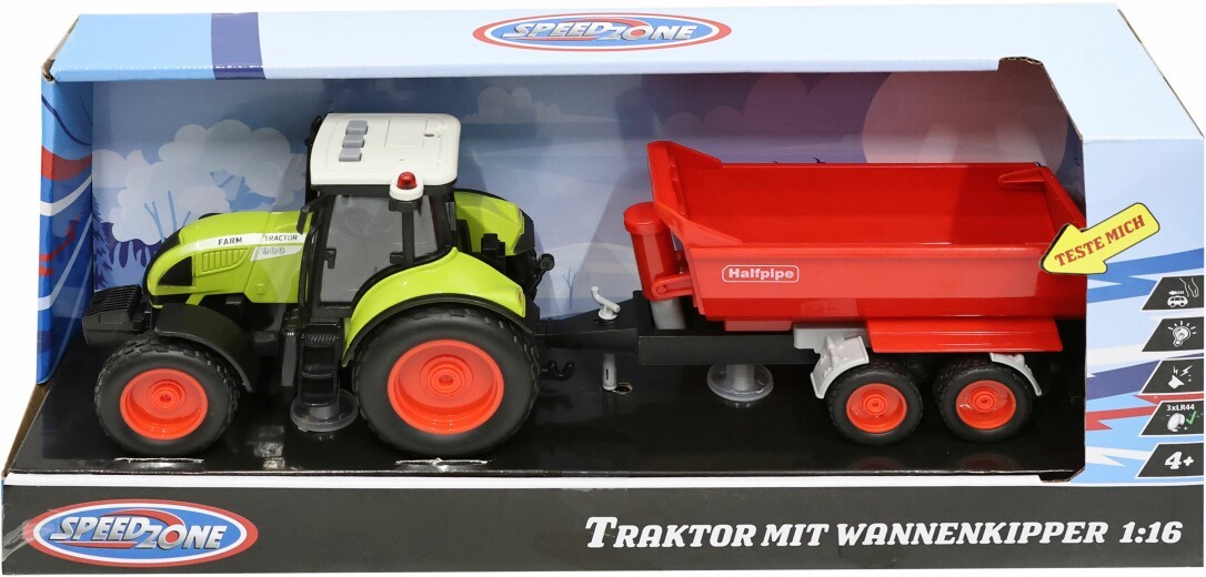 VEDES Großhandel GmbH - Ware Speedzone Traktor mit Wannenkipper, Licht & Sound, Friktion