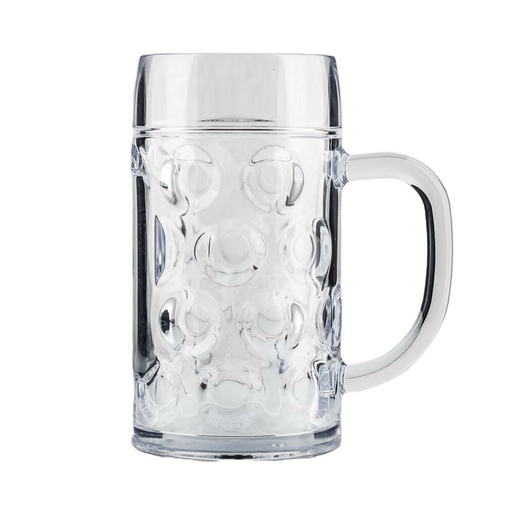 Bierhumpen 500 ml mit Eichstrich. Der klassische Bierhumpen - zünftig für unterwegs für Biergärten, Oktoberfeste und andere Events. Material: Kunststoff (SAN). Farbe: Glasklar. Maße: Ø 8,6 cm, H 16 cm.
