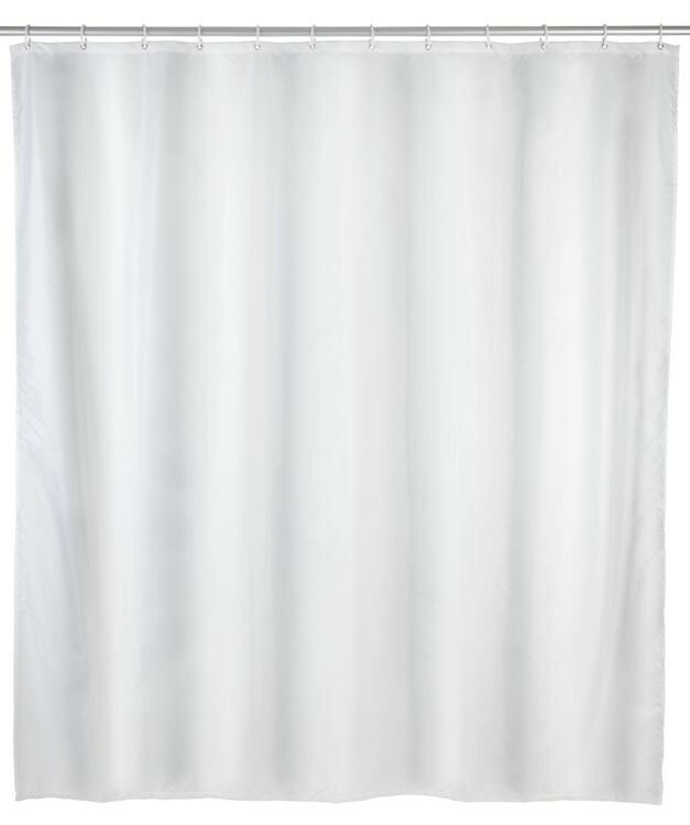 Der klassische Vorhang in unifarbenem Weiß eignet sich mit einer Breite von 180 cm sowohl für Dusche als auch Badewanne.