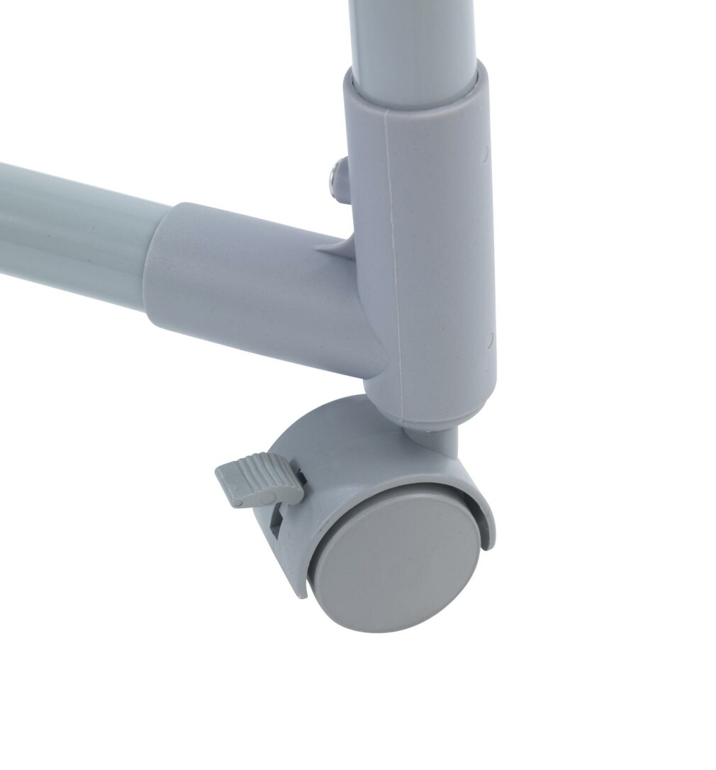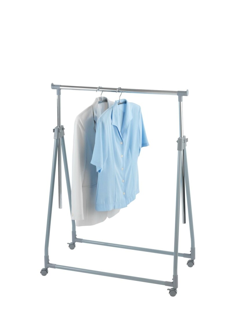 | Artikeleigenschaften | Zum Aufbewahren von Textilien ·Stufenlos höhenverstellbar von 99-169,5 cm ·Vier Rollen mit Feststellbremsen ·Nach Gebrauch platzsparend zusammenklappbar ·Tragkraft bis 40 kg |