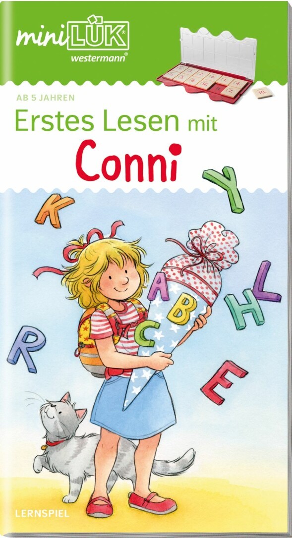 Conni kommt in die Schule. Die Übungen miniLÜK-Heft Erstes Lesen mit Conni begleiten die Heldin unzähliger Hefte, Bücher, Spiele an ihrem 1. Schultag. Lerne Connis Familie und Freunde kennen, erlebe Conni in ihrer neuen Klasse, schau, was sie in ihrer Schultüte findet und sei bei ihrer Einschulungsfeier dabei. Und lerne dabei dank der abwechslungsreichen LÜK-Übungen ganz einfach Lesen. Die perfekte Vorbereitung für die Schule bzw. eine tolle Begleitung für den Schulstart.