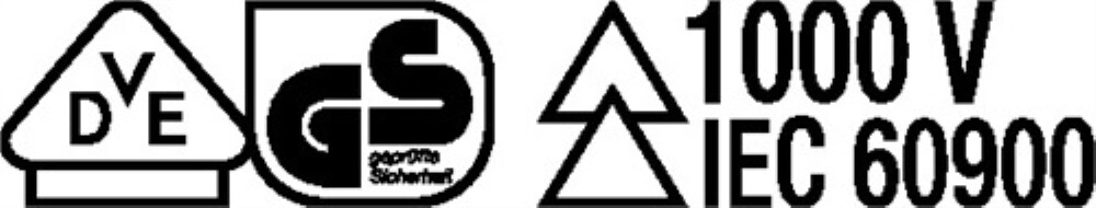 - Für Arbeiten im Bereich von spannungsführenden Teilen bis 1.000 V AC