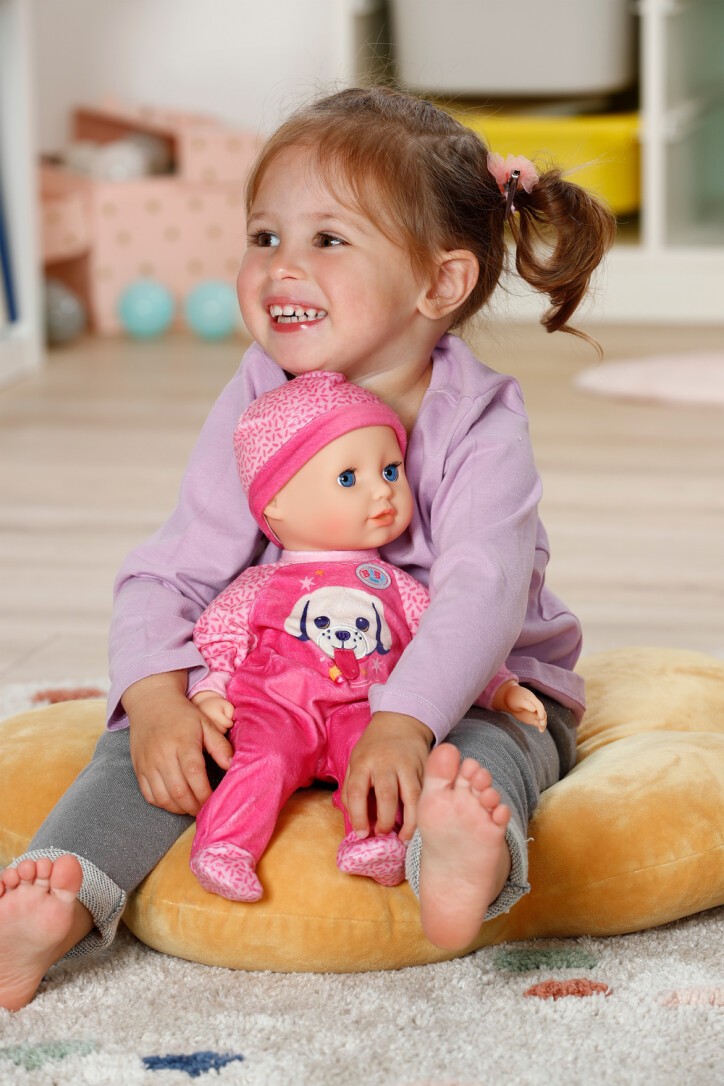 BABY born Anna Pink, weiche 36cm große Babypuppe mit Stoffkörper, mit pinken Strampler und Schlafaugen inkl. Fläschchen