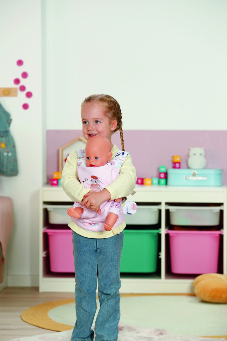 BABY born Babytrage, Puppentrage für Kinder mit 2 Blickrichtungen und verstellbarem Gurt in rosa und grau für 36 und 43 cm Puppen geeignet