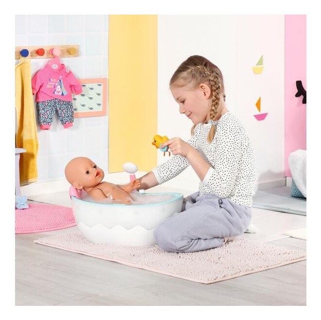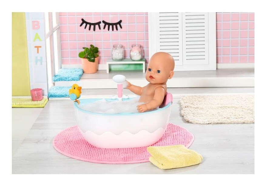 Großer Badespaß mit automatischer Duschfunktion, Licht- und Sound-Effekte. LED Licht in der Wand der Badewanne. Inklusive lustigem Enten Wasserschlachtspiel. Im neuen trendigen Design. Batterien erforderlich. Ab 3 Jahren.
