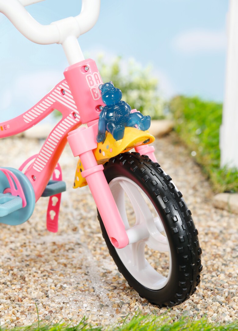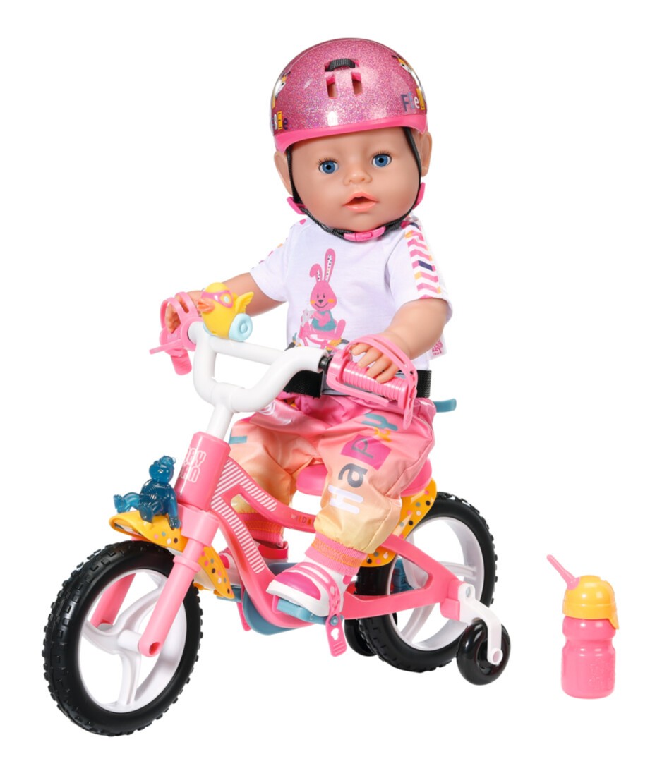 Hochwertiges Zubehör für die BABY born Markenspielpuppe. Für erweitertes, abwechslungsreiches und langanhaltendes Spielvergnügen. Auch für kleinere Puppen geeignet. BABY born Fahrrad mit Gurtsystem, Hupe und Blinklicht. Inkl. Flasche. Ab 3 Jahren.