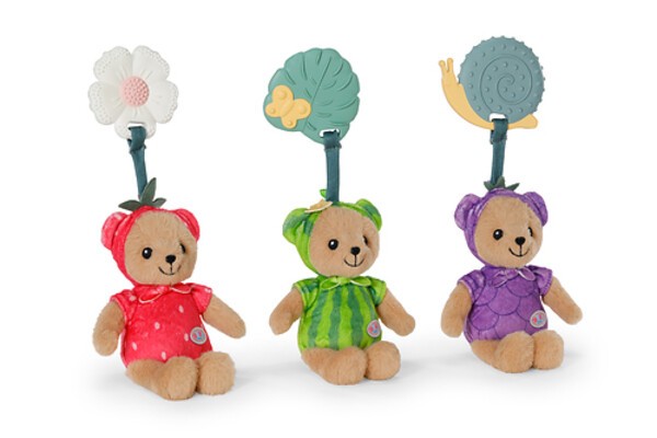 Kuschelige Teddybären in verschiedenen Fruchtdesigns Beißring mit Vibrationskordel waschbar