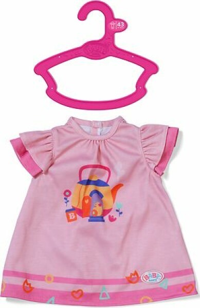 Süßes Kleid mit flauschigen Schmetterlingsärmeln. Mit einem liebevollen, erzählenden Druck, der die Ente Berta in ihrem Teekannenhaus zeigt. Passt für BABY born Puppen in 43 cm. An einem Kleiderbügel aus bis zu 80% recyceltem PET. Ab 3 Jahren.