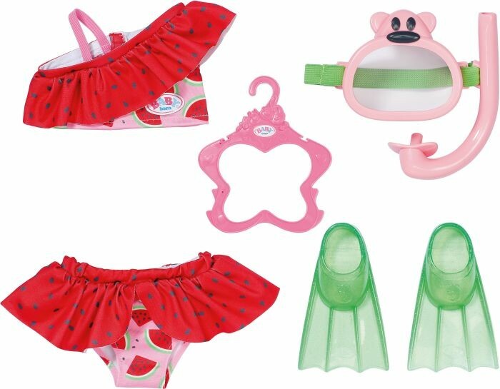Abtauchen war noch nie so stylisch: Mit ihrem neuen Bikini, Taucherbrille mit Schnorchel und ihren Schwimmflossen erkundet BABY born die Welt unter Wasser. Wie spannend!
