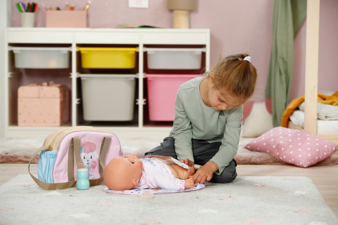 BABY born Wickeltasche, Puppenwickeltasche mit Blumen inkl. Wickelunterlage, Windel und Puderdose