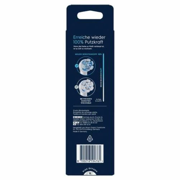 FARBWECHSELNDE BORSTEN: Die Oral-B Aufsteckbürsten verfügen über farbwechselnde Borsten, die signalisieren, wenn der Bürstenkopf gewechselt werden sollte, für maximale Reinigungsleistung