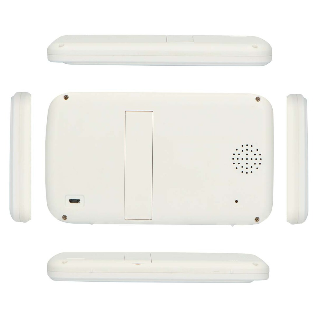 Alecto DVM-275. Maximum indoor range: 50 m, Maximum outdoor range: 300 m. Product colour: White, Housing material: Plastic. Display diagonal: 12.7 cm (5"), Display resolution: 480 x 272 pixels, Display type: LCD. Power source type: AC, Battery, AC input voltage: 110-240 V, AC input frequency: 50-60 Hz. Transmitter width: 7.5 cm, Transmitter depth: 7.5 cm, Transmitter height: 13 cm
