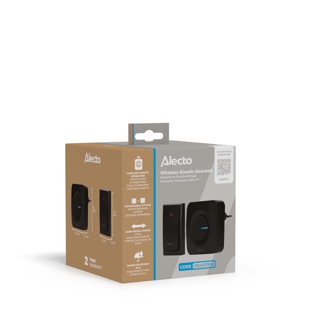 Die Alecto ADB30ZT ist eine drahtlose kinetische Türklingel, die ganz ohne Batterien oder Stromkabel funktioniert. Durch Drücken des Knopfes wird kinetische Energie erzeugt, die eine völlig nachhaltige und umweltfreundliche Art des Klingelns ermöglicht.Die Installation ist schnell und einfach. Befestigen Sie die Außeneinheit einfach mit dem mitgelieferten Befestigungsmaterial an Ihrer Tür oder Wand. Der Türklingelknopf ist spritzwassergeschützt (IP44) und damit für den Außeneinsatz bei jedem Wetter geeignet. Der Empfänger für den Innenbereich lässt sich drahtlos anschließen und kann überall in Ihrem Haus angebracht werden.Haben Sie mehrere Etagen oder größere Wohnräume? Der Alecto ADB30ZT kann mit bis zu sechs Empfängern erweitert werden, damit Sie keinen Besucher mehr verpassen. Mit einer Reichweite von bis zu 50 Metern in Innenräumen (und bis zu 200 Metern im Freien) bietet diese Türklingel zuverlässige Leistung in Ihrem gesamten Haus. Das kodierte Funksignal verhindert Interferenzen mit anderen Geräten.Genießen Sie die Flexibilität, aus 36 Melodien und vier einstellbaren Lautstärken (0-110 dB) wählen zu können, so dass Sie den Ton und die Lautstärke nach Ihren Wünschen einstellen können.