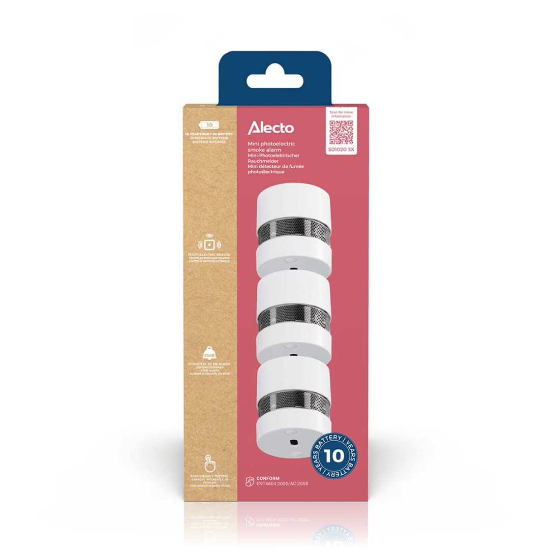 Alecto Mini-Rauchmelder mit 10 Jahren Batterie- und Sensorlaufzeit 3er-Pack Weiß