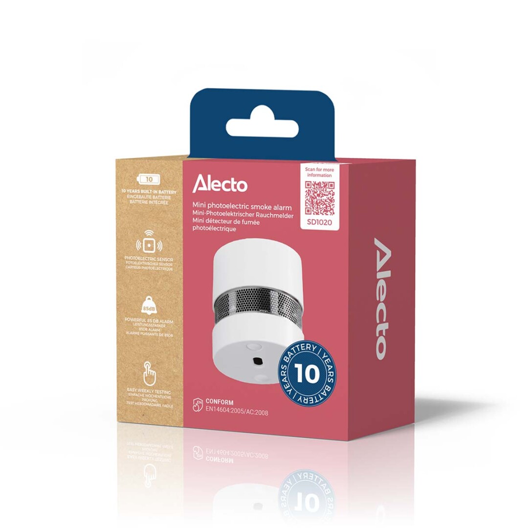 Alecto Mini-Rauchmelder mit 10 Jahren Batterie- und Sensorlaufzeit Weiß