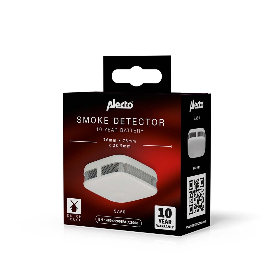 • Inklusive Montagematerial für eine einfache Anbringung10 Jahre NutzungsdauerDer Alecto SA50 Rauchmelder hat eine Lithium-Batterie, die volle 10 Jahre hält – energieeffizient und zuverlässig. Und auch der hochwertige optische Sensor wartet mit einer Lebensdauer von 10 Jahren auf. Dadurch haben Sie die Gewissheit, dass Sie für die nächsten 10 Jahre bei Rauch oder Feuer in Ihrer Wohnung sofort alarmiert werden. Nicht mehr gestört oder gar mitten in der Nacht geweckt werden Sie dagegen in den nächsten 10 Jahren durch lästiges Piepsen, weil Batterien gewechselt werden müssen. Einmal installiert – ein einfacher Vorgang – brauchen Sie sich nicht weiter um ihn kümmern, denn er wird stets betriebsbereit und wachsam sein. Der Melder hat aber nicht nur eine lange Lebensdauer von 10 Jahren, sondern er wird auch mit einer Garantie von 10 Jahren geliefert.Ab dem 1. Juli 2022 besteht die Pflicht, einen Rauchmelder zu installierenAb dem 1. Juli 2022 ist es in manchen europäischen Ländern vorgeschrieben, auf jeder Wohnetage Ihres Hauses und in engen Räumen, durch die ein Fluchtweg verläuft, ein Rauchmelder zu installieren. Die Bauverordnung wird derzeit geändert, und dadurch entsteht eine gesetzliche Verpflichtung, der nachgekommen werden muss. Sie gilt sowohl für Eigentums- und Mietwohnungen als auch für Bestands- und Neubauten.Einfache InstallationDieser Rauchmelder mit einem Durchmesser von 7,6 cm wird mit einer Bodenplatte, Schrauben und Dübeln geliefert, um die Installation so schnell und einfach wie möglich zu machen, Am besten schrauben Sie ihn an die Decke. Er kann auch mit dem mitgelieferten 3M-Stickern aufgeklebt werden. Eine weitere Möglichkeit ist es, den Rauchmelder praktisch mit Magneten anzubringen, etwa mit dem Alecto MK-2 (nicht im Lieferumfang enthalten). Aufgrund seiner geringen Größe und seines schlanken Designs fällt er kaum auf. Ausgenommen, er wird ausgelöst, natürlich.Besteht die Gefahr, dass der Alarm fälschlicherweise ausgelöst wird, zum Beispiel weil Sie kochen oder das Abendbrot zubereiten, betätigen Sie einfach die Stumm- oder Pause-Taste. Durch einen Tastendruck wird die Empfindlichkeit des Sensors vorübergehend reduziert, so dass der Alarm sozusagen eine Pause einlegt.Ausführlich getestetDer Rauchmelder Alecto SA50 wurde ausgiebig getestet und erfüllt die strengen Anforderungen der Norm EN14604:2005/AC:2008. Dies ist die internationale Prüfnorm für Rauchmelder. Natürlich ist es keine schlechte Idee, den Rauchmelder von Zeit zu Zeit selbst zu testen. Darum ist er mit einer Test- und Reset-Taste ausgestattet. Einmal drücken und dieser kleine Rauchmelder lässt Sie hören, wozu er in der Lage ist.Was ist im Lieferumfang enthalten?• Rauchmelder mit eingebauter Lithium-Batterie