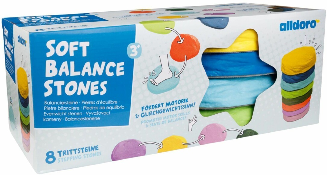 Die Soft-Balanciersteine von alldoro bieten spielerisches Training für Gleichgewicht und Koordination! Das Set umfasst 8 Trittsteine aus weichem, flexiblem Schaumstoff-Material mit einer besonders rutschfesten Unterseite für sicheren Halt. Mit einer Größe von 18 x 15 cm sind die Steine ideal für Kinder und fördern Bewegung auf kreative und spaßige Weise. Perfekt für drinnen und draußen ein tolles Spiel- und Trainingsgerät für kleine Abenteurer!
