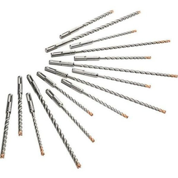 SDS-plus Hochleistungsbohrer Mix Box 15-tlg bestehend aus: 7Stk. 6x160 mm, 3Stk. 8x160 mm, 3Stk. 6x260 mm, 2Stk. 8x260 mm. SDS-plus Hochleistungsbohrer mit 4 Vollhartmetall-Schneiden und neuem progressiven Spiralendesign mit Dübellängenindikator. Problemloses Durchbohren von Eisenarmierungen, vibrationsarmer Lauf und schnelle Bohrmehlförderung.