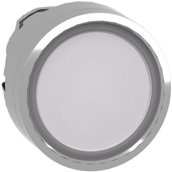 Illuminated push button head - metal - flush - white - Ø22 - spring return - plain lens integral LED