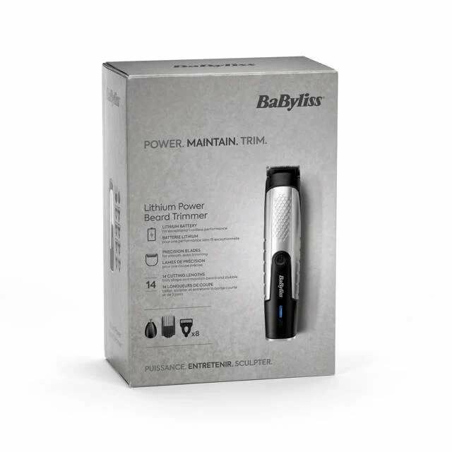 Der BaByliss Lithium Power T812E Beard Trimmer bietet eine glatte und gleichmäßige Verkleidung, ideal für Stoppel- und Kurzbärte. Die Edelstahlklingen sorgen für Präzision und exzellente Verarbeitung.