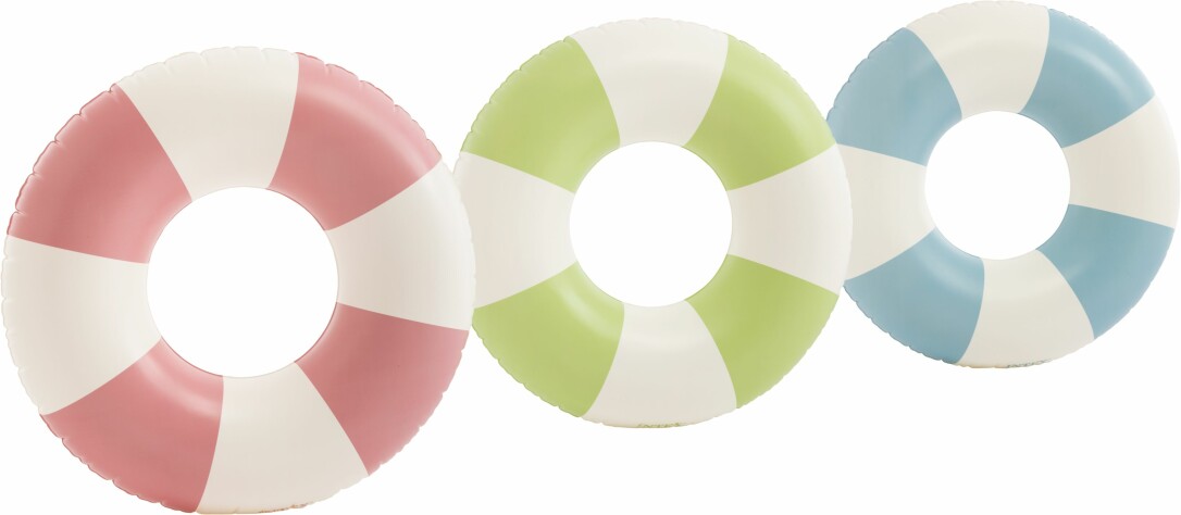 Die farbenfrohen Schwimmreifen ''Coastal Cabana Tubes von Intex sind ein echter Hingucker im Wasser. Mit einem Durchmesser von 91 cm und einem modernen, pastellfarbenen Design bieten sie stilvollen Badespaß und ziehen am Pool oder Strand alle Blicke auf sich. Die Schwimmreifen sind in drei attraktiven Farben erhältlich: Korallenrosa, Salbeigrün und Puderblau. Geeignet für Kinder ab 9 Jahren. Gewichtslimit: 60 kg.