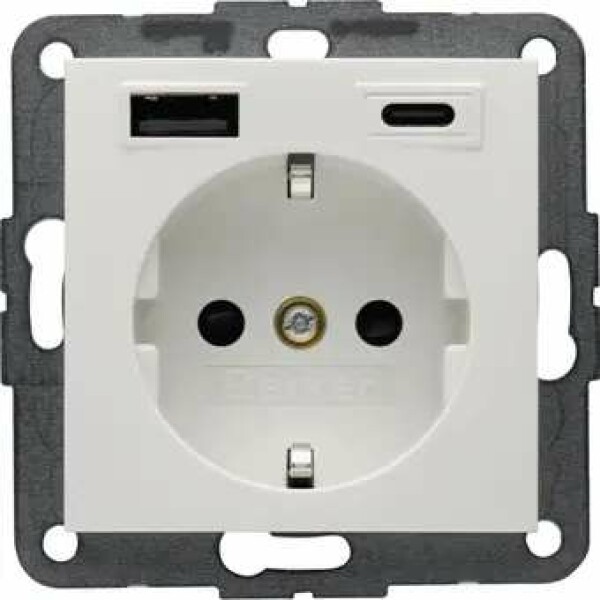 Steckdose mit 2 USB-Buchsen Typ A und Typ C (PD: Power Delivery Schnellladestandard für USB-C-Anschlüsse) zum Laden mobiler Endgeräte, wie z.B. Tablets, Smartphones, Navigationsgeräte und Digitalkameras über USB-Kabel, kurzschlussfest und überlastsicher (elektronische Sicherung), für Unterputz- und Hohlwandmontage, mit Steckklemmen.